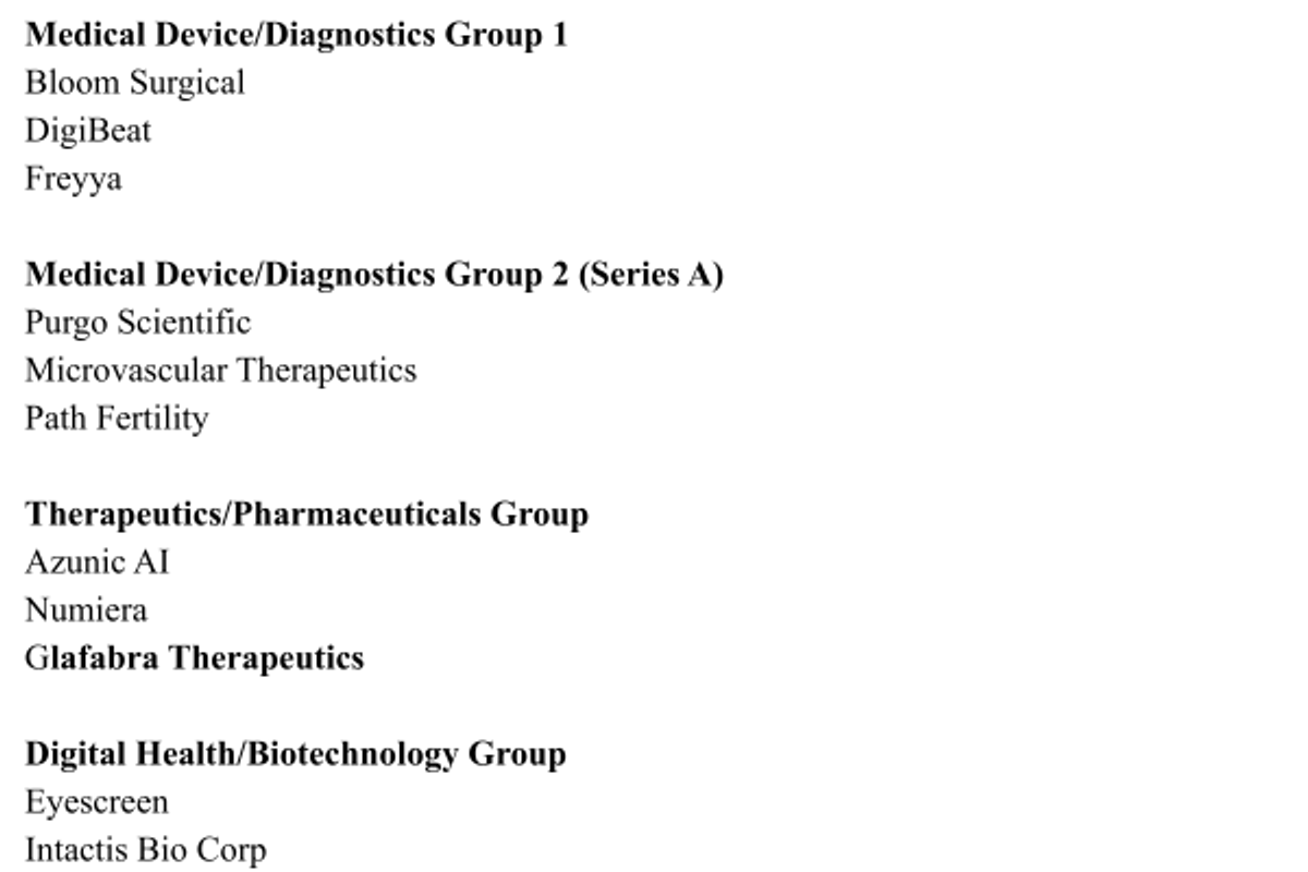 The 12 companies listed below were selected from more than 40 companies that applied to present. These companies, divided into three industry sub-sectors, were chosen based on rigorous criteria, including uniqueness of the product, potential of the product for commercialization, and quality of management. For information on the companies and a complete agenda visit www.eilifesciencessummit.org.